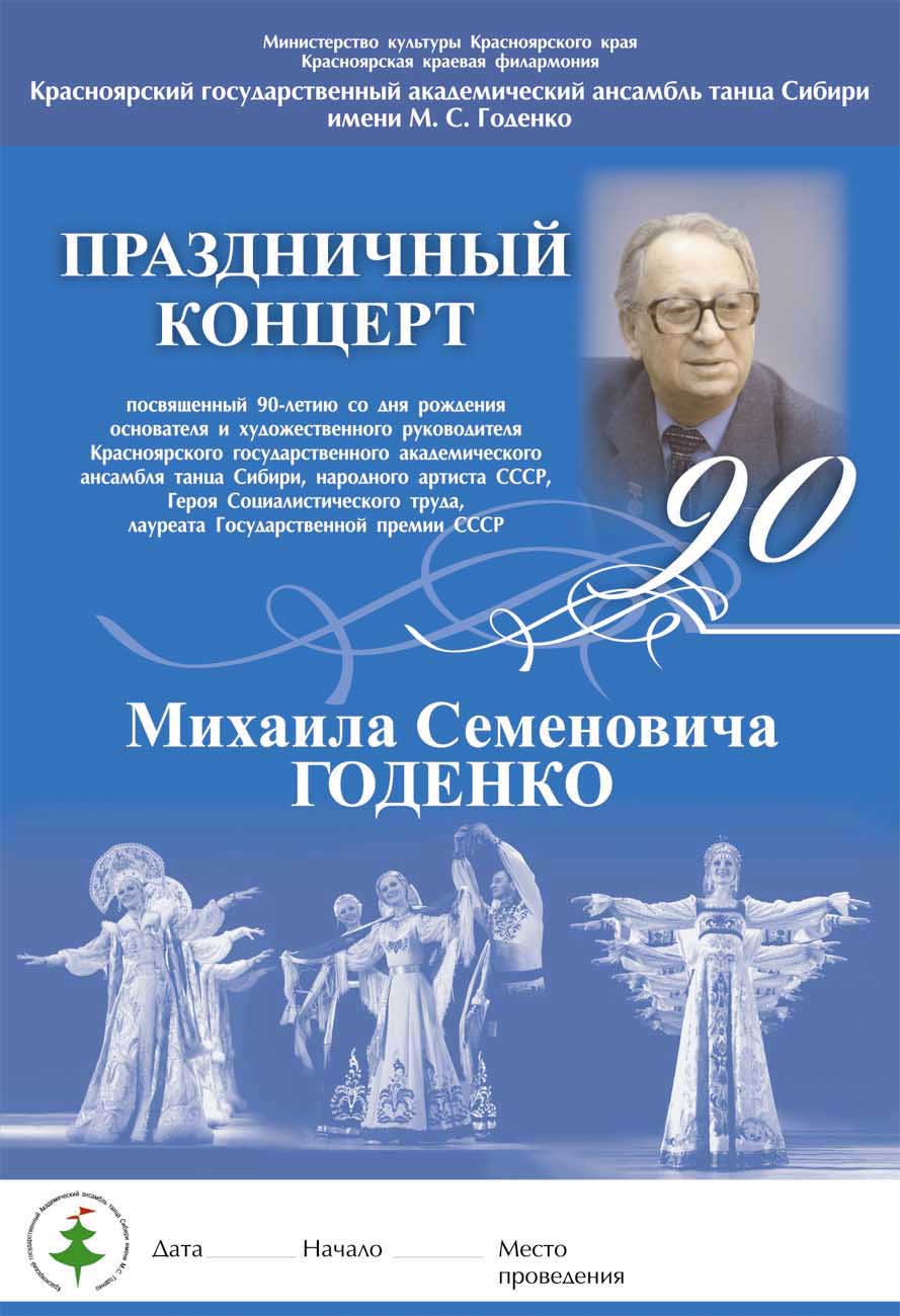 плакаты для юбилейных концертом Ансамбля Годенко, концертов ансамбля Краса. Плакаты для Администрации Красноярского края. Разработка лого компаний — ФБК, группа компаний «Андрей Дубенский»